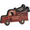 - Festive Design: Features a red truck with a dog wearing a Santa hat and playful bone accents.
