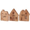 A set of three wooden sitters from our Christmas Collection cut in the shape of various houses with gingerbread inspired designs. Gingerbread house designs are replicated from original artwork painted onto burlap canvas, giving the art a unique depth and texture. Seasonal sitters feature cutout designs for the windows with coordinating natural wood on the sides and backs. Our Gingerbread Village chunky sitter set is designed to free-stand alone on a flat surface. The sitter set is packaged in a cardboard box with an acrylic lid and label displaying all three designs. A charming set of seasonal home accents great for gifting that can be easily displayed in any home or workspace.