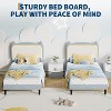 - Enchanting Feline-Inspired Headboard Design: Showcases a distinctive cat-shaped silhouette, luxuriously upholstered in sumptuous, hypoallergenic velvet with ergonomic padding. Cultivates a storybook ambiance for imaginative playrooms, tranquil bedtime rituals, and serene slumber.