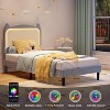 Princess Bed Frame, Velvet Upholstered Cat Headboard Platform Bed