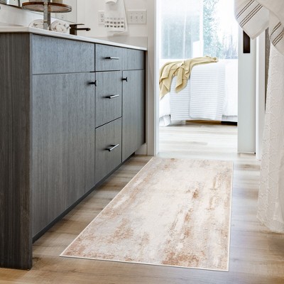 The rug features a modern abstract pattern that melds beautifully with its light beige and grey palette, with hints of rust as accents that add warmth and dimension to the design. This tasteful pattern will complement a wide range of decors, enhancing your space with its serene and versatile aesthetic.