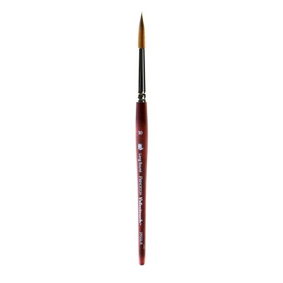 These short handle mixed media synthetic brushes work well with oil, acrylic or watercolor paint. The luxe-blend multiple-filament blend offers excellent color holding capacity. Each individual brush has precision tapering for fine point and spring, a nickel-plated brass ferrule and the signature Velvetouch handle for ultimate comfort.