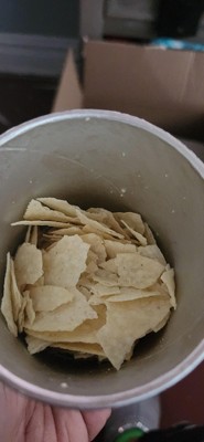 Mine showed up disintegrated like another pic. I guess the good news(?) was the hockey team was so hungry on the bus they just poured them in their mouths? Not really how chips are meant to be enjoyed though. Will NOT buy again despite the ease of a bus snack.