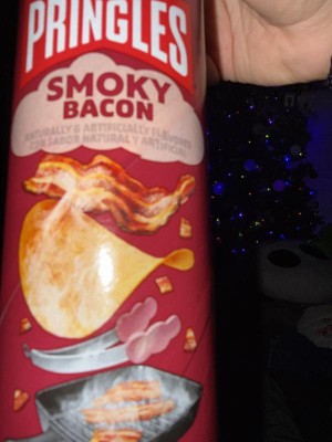 Pringles Smoky Bacon blends rich hickory flavor with savory pork belly and a touch of salt for a smoky campfire bacon flavor experience. Each crisp chip packs a powerful blend of bold and savory flavors to keep you wanting more. Bring this ready-to-go can on your next camping adventure, summer picnic in the backyard, or wherever the snacking mood strikes you.