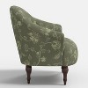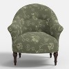 Give any space in your home a boost of soft style with the Printed Accent Chair from Threshold™ designed with Studio McGee. Made with a wood frame and covered with cotton-linen blend upholstery, this printed chair brings life to any space. It stands on decorative turned legs and boasts a padded seat with wing-style curved back with high armrests to provide comfy seating.