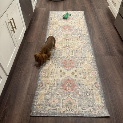 [This review was collected as part of a promotion.] I absolutely adore this rug. The colors are beautiful and it stands up to monthly washes with ease and no warping or fraying. We’ve had one in our kitchen for over a year with daily use and it’s held up great.