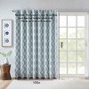Introducing a modern and stylish take on energy efficiency, our SunSmart Blakesly Printed Ikat Blackout Patio Panel is the perfect update to any room. Fresh and chic, this patio panel features a printed aqua ikat design on a textured firm base fabric, creating dimension for a cool and casual look. Finished with a two pass foamback and bonding technique, the panel is enhanced to block most sunlight and create a significant barrier to reduce outside noise. Silver grommet top detail makes it easy to hang, open, and close panels throughout the day; while fitting up to a standard 1.25¡± diameter rod. With considerable energy savings and a high level of added privacy, this blackout patio panel is perfect for any wide or average window space by providing full coverage with its extra width. Give your space a beautiful, one-of-a-kind update with this contemporary blackout patio panel. Lighting level: Heavily Shaded Ambiance.