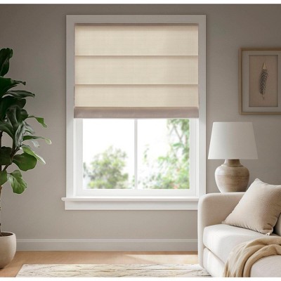 - Luxe sheen and texture face fabric with foamback bonding in solid beige liner