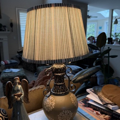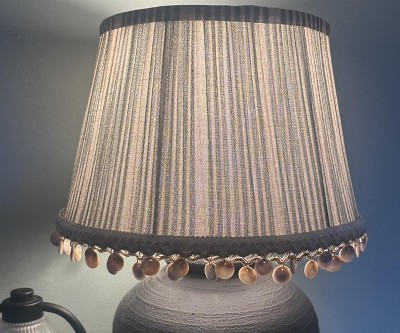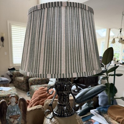 It is so hard to find a shade that fits onto my lamp stand without the additional attachment. This shade was SO cute with the olive and cream stripes and sets my entryway off. I placed on a thin, black iron stand. Extremely pleased with the quality and care of packing when shipped.