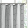 Freshen up your bathroom with the enchanting style of the Intelligent Design Raina Printed Metallic Shower Curtain. Flaunting a geometric metallic print, this stunning shower curtain creates a fun and eye-catching look! Machine washable for easy care, vivid hues brings a hip and modern flair to your bathroom.Product Details72x72"1 Shower Curtain:72"W x 72"LMaterialmicrofiber, printed