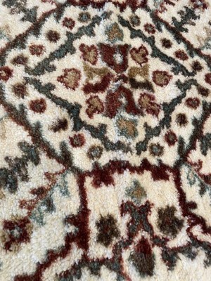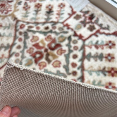 A: Hello Bonafloorcleanerlover - Thank you for your interest in the Printed Persian Rug Spice from Threshold. The rug features multicolored neutrals. Happy shopping! - Cynthia