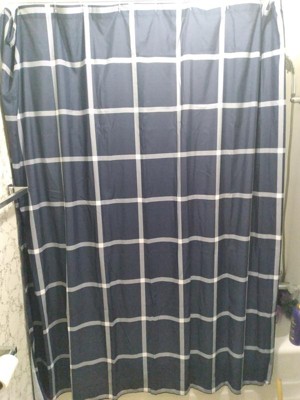 Simple lines make the best coordinates for any bathroom. A medium size windowpane pattern is a perfect coordinate to any busy room or if you are looking for a modern look. The gray and charcoal gray colors use a white base and the navy version uses an inverse with navy as the background and white as line pattern color. The individual panes have added depth as the cross bars use a textured striping style and the intersecting points are completely solid. This design adds more depth to the pattern without adding complexity. Made from 100% microfiber polyester items are make for use thought out the year. Face is made from 100% microfiber polyester yarns in a percale weave and printed. This item is machine washable, but care should be taken to wash in appropriate size equipment to avoid damage. Includes: one shower curtain 72x72 inches.