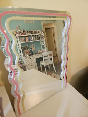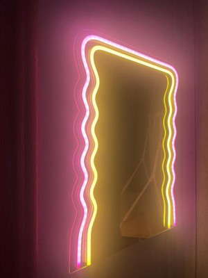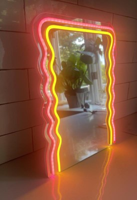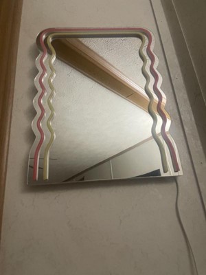 West & Arrow Prism 13" LED Neon Wavy Desk Mirror is really nice. This mirror is incredibly beautiful with its bright cheerful and colorful colors. It also has a fun and funky wavy design. The LED lights, are so bright and really unique. I have this hung up in my art room as it really fits the aesthetic well. I would recommend!