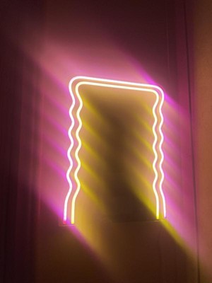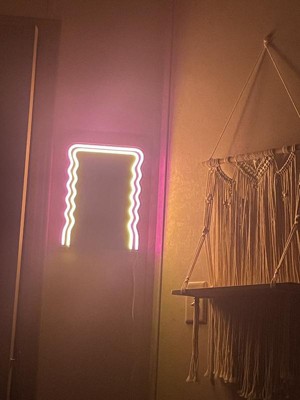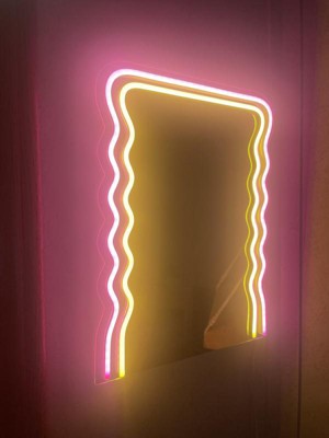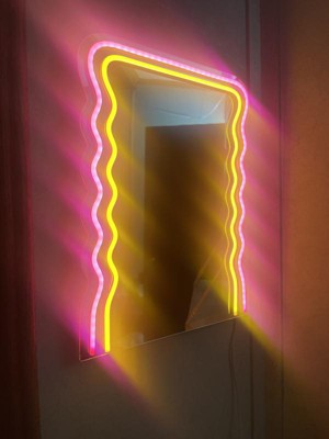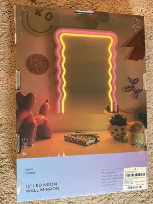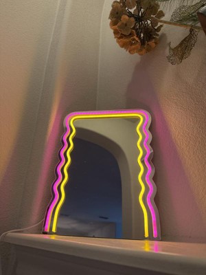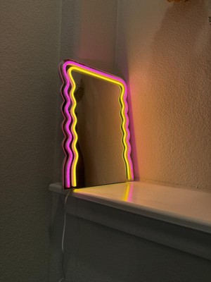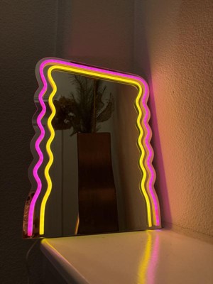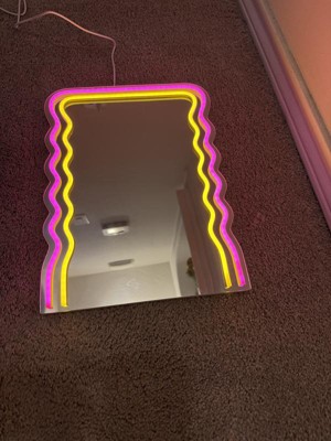 Reflect your style with this eye-catching mirror framed by vibrant, wavy neon LEDs. Measuring 13 inches in height and 10 inches in width, it’s designed for easy display thanks to its rear wall hook. Powered by USB and featuring a simple on/off switch, this piece adds a fun and luminous touch to your decor.