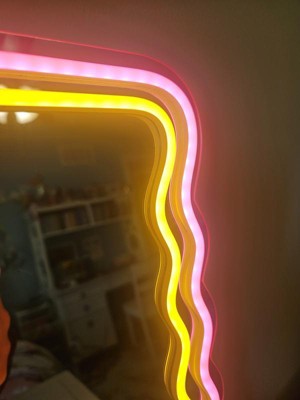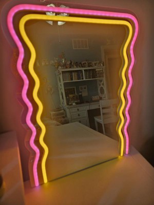 This led neon desk mirror is really nice! It’s perfect for a preteen or teenager looking to brighten up their room decor. The wavy desyis super cool and adds a unique touch. I love how easy it is to turn on and off with the power switch. Colors are beautiful. It easily lights up with a USB charger, but keep in mind that the power block is not included. It’s a fun, vibrant addition to any room!