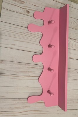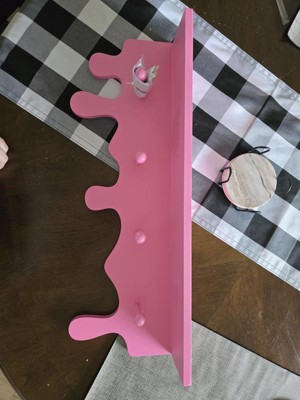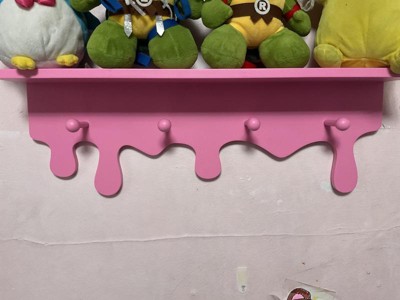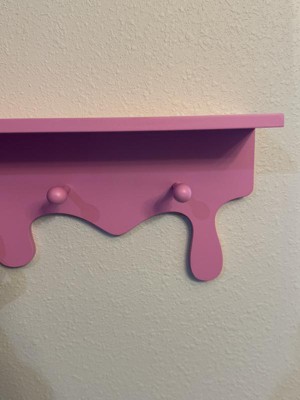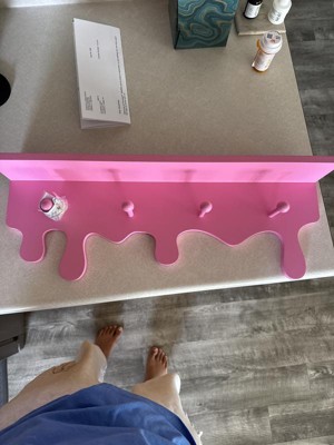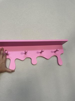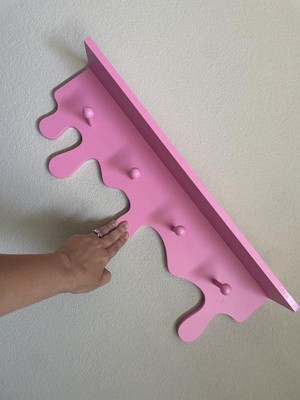 Add a playful and unique touch to your space with this Pink Drippy Wall Shelf with Hooks. Designed with a fun pink "drippy" effect, it brings a whimsical vibe to any room. The shelf includes convenient hooks, perfect for hanging accessories, keys, or small items while helping you stay organized. Ideal for bedrooms, entryways, or living spaces, this shelf is both functional and stylish. The compact design makes it easy to display and store, adding a fun pop of color and personality to any wall.