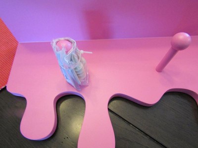The drippy pink shelf was easy to install. It is a nice shade of pink and I love that it has hooks to hang sweaters and other items. I do wish the shelf was a little wider to be able to put more stuff on top. The drip design is pretty cool, although it does get covered when you hang items on the hooks.