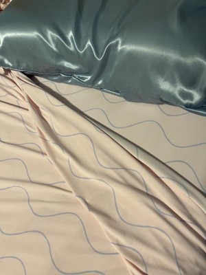 Looking for a different style of Queen Size Sheets, this is the one you should try, it’s a very Soft Fabric, with a Cool Touch Fabric, the Color Scheme of Pink with Blue Wave Lines makes it Unique. The Set comes with Flat, Fitted and Standard Pillow Cases, which seems to be a bit Larger than normal size, which makes it easy to put your thicker Pillows.