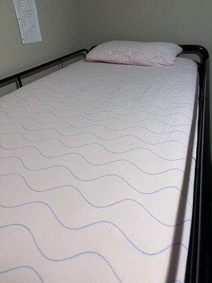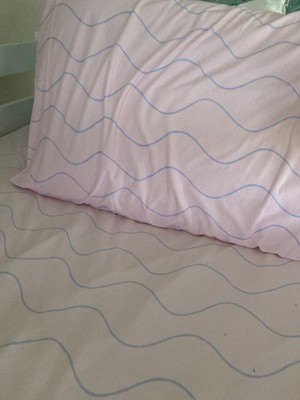 This pink and blue wave jersey bedsheet set is so soft and great for any age kid. It is stretchy which makes making the beds breeze. It is lightweight to promote comfortable sleep. The set comes with a fitted sheet, top sheets, and two pillow cases.
