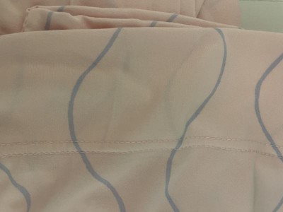 The sheets feel soft, not scratchy or cheap. Breathable. Nice, soft/light pink color with slight, bluish design. Would go nicely with a variety of comforters and room decor. After washing, sheets still felt nice and the colors did not fade or bleed