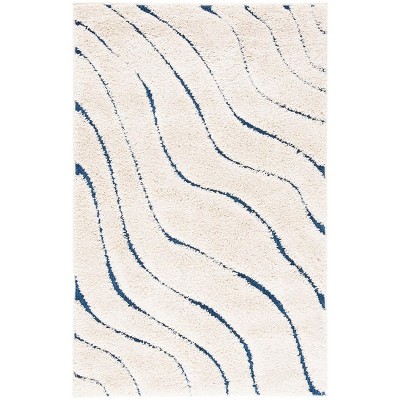 Pro Lux Shag PLX432 Power Loomed Area Rug - Cream/Blue - 4'x6' - Safavieh.