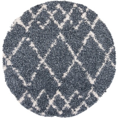 Pro Lux Shag PLX433 Power Loomed Area Rug - Blue/Creme - 6'7" round - Safavieh.