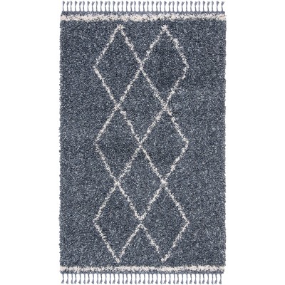 Pro Lux Shag PLX434 Power Loomed Indoor Area Rug - 5'x8' - Blue/Creme - Safavieh