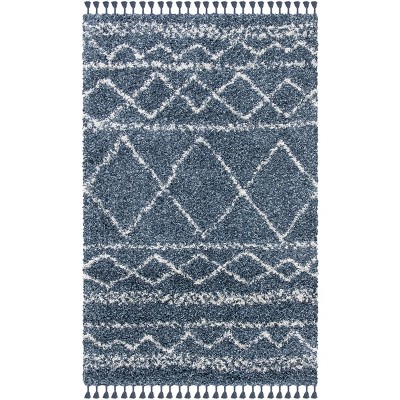 Pro Lux Shag PLX435 Power Loomed Area Rug - Cream/Blue - 4'x6' - Safavieh.