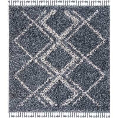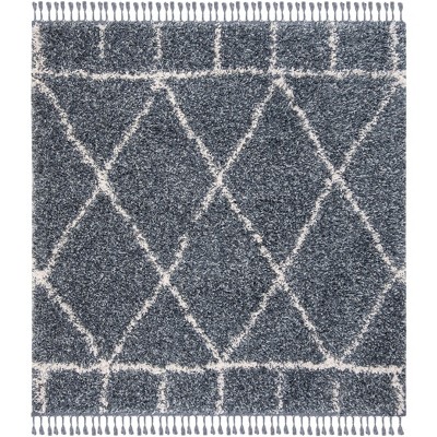 Pro Lux Shag PLX436 Power Loomed Indoor Area Rug - 6'7"x6'7" - Blue/Ivory - Safavieh