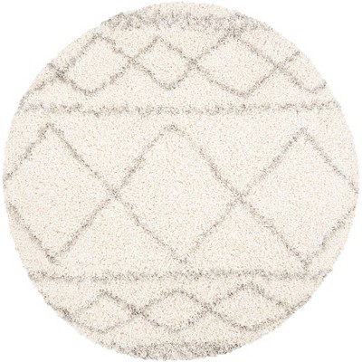 Pro Lux Shag PLX436 Power Loomed Indoor Area Rug - 5'1" Round - Ivory/Light Grey - Safavieh