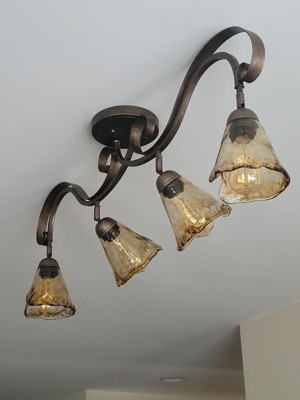 Pro Track 4-Head Ceiling Track Light Fixture Kit Adjustable Brown Bronze Finish Organic Amber Glass Western Kitchen Bathroom Living Room 41" Wide