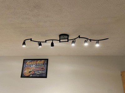 Pro Track Heavy Duty Axel 6-Head LED Ceiling Track Light Fixture Kit Spot Light GU10 Dimmable Black Metal Farmhouse Rustic Kitchen Bathroom 72" Wide