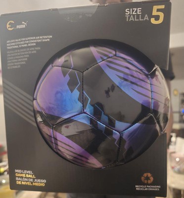 This iridescent soccer ball is awesome to look at. It has a duochrome metallic look to it. My kids have been really impressed with this ball. It looks good and feels durable. The Puma brand is reliable and this ball shines in more ways than one.