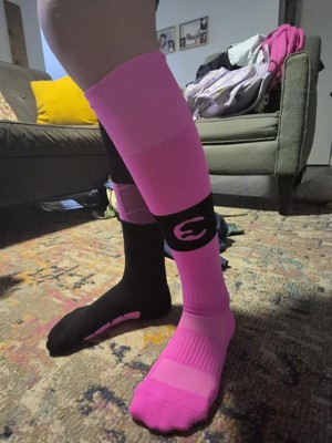 Pink and black soccer socks set for girls.