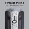 - VERSATILE WITH 5 SPEEDS & BOOST. This versatile electric mixer has 5 different speed options, plus Boost for those times when you need extra power.