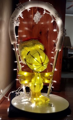 ProductWorks Peanuts Pre-Lit Woodstock in Santa Hat Indoor/Outdoor Christmas Yard Ornament, Holiday Display with 35 Lights, 22 Inches