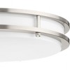 The Abide Integrated LED Medium Round Flush Mount Light is precision crafted for contemporary settings. Sleek Brushed Nickel circular bands hold a white acrylic diffuser concealing its 5 CCT selectable (2700K, 3000K, 3500K, 4000K and 5000K) dimmable LED light source. Versatile surface mount light is perfect for bedrooms, bathrooms, kitchens, pantries, laundry rooms, garages and work areas / Ideal for Commodity Use and Contemporary settings / Stylish banded frame is finished in Brushed Nickel / Includes an integrated 5-CCT selectable dimmable LED light source. Switch between 2700K, 3000K, 3500K, 4000K and 5000K. 90 CRI / Measures 14-in. diameter x 2.83-in. high / Certifications: cCSAus Damp Location Listed. ADA Compliant. / Our 5-Year Limited Warranty guarantees your complete satisfaction with your purchase and includes professional after-sales customer service support / Includes installation instructions and mounting hardware for a quick, easy installation. ,