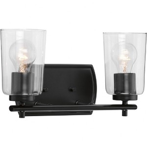 Progress Lighting Adley 2-Light Bath Wall Light, Black, Clear Glass Shades