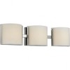 Elevate your home's ambiance with the Arch Collection LED Bath Light by Progress Lighting. Crafted from durable steel with a brushed nickel finish, this 20.5" wide fixture features three energy-efficient LED bulbs, each providing 10 watts of power and a warm color temperature of 3000 Kelvin. With a high CRI of 90 and a total of 1508 lumens, it illuminates your space with precision. The etched glass shades and sleek frame create an inviting atmosphere, perfect for a relaxing retreat. Damp rated for versatility, this fixture is ideal for bathroom settings and comes with all necessary hardware and clear instructions for assembly. Transform your bath area into a serene sanctuary with this chic and functional lighting solution.