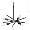 Introducing the Astra chandelier from Progress Lighting's Design Series. This space-age-inspired fixture is crafted from steel with a sleek matte black finish, adding a contemporary touch to any modern or mid-century decor. The chandelier features six spoked arms radiating from a cylindrical down rod, creating a dynamic and stylish design. Measuring 22.57" in width and 10.5" in height, this versatile chandelier is perfect for dining rooms, kitchens, and bedrooms. It is dry rated and comes with 8" of chain for flexible installation. The Astra chandelier accommodates six 60-watt incandescent bulbs (sold separately) and is also compatible with LED bulbs. The fixture includes a 1-year limited warranty, installation instructions, and mounting hardware for easy setup. Elevate your space with the fashionable and affordable luxury lighting of the Astra chandelier.