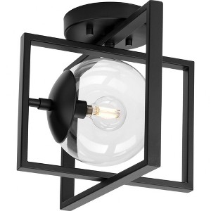 Progress Lighting Atwell 1-Light Matte Black Semi-Flush Mount with Clear Globe Shade