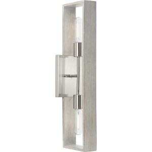 Progress Lighting Boundary 2-Light Wall Sconce, Brushed Nickel, Grey Washed Oak, Open Frame, Design Series
