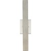 Introducing the Progress Lighting Boundary Wall Sconce from the Design Series collection. Crafted from steel with a brushed nickel finish and grey washed oak wood, this damp-rated fixture offers a modern organic look. The elongated rectangle open frame showcases 2 incandescent bulbs (60W each) or LED equivalents (sold separately), providing clear illumination to dining rooms, great rooms, and bathrooms. Measuring 24" in length, 5.5" in height, and extending 5.25" from the wall, this sleek silhouette is perfect for Modern, Contemporary, and Mid-Century Modern interiors. The fixture is cETLus Damp location listed and comes with a 1-Year Limited Warranty, installation instructions, and mounting hardware. Elevate your space with the timeless style and affordable luxury of the Progress Lighting Boundary Wall Sconce.