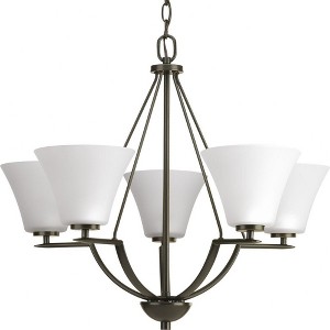 Progress Lighting Bravo 5-Light Chandelier, Antique Bronze, White Etched Glass, Chain Mount, Ceramic Material
