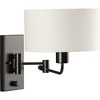 Introducing the Carrick Collection from Progress Lighting, where function meets fashion. Crafted from durable steel with a sleek matte black finish, this wall light measures 10.87" in width, 11.75" in height, and 10" in length. It features a full-range swing arm that supports a crisp summer linen shade and an etched glass diffuser, providing glare-free task illumination. The integral rotary switch on the backplate offers convenient control. With a backplate width of 4.5" and a length of 7.87", this damp-rated fixture is suitable for various settings. The Carrick Collection accommodates incandescent bulbs with a wattage of up to 60 watts, creating a warm and inviting ambiance. Elevate your space with the perfect blend of style and functionality with the Carrick Collection from Progress Lighting.