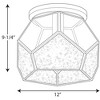 Introducing the Cinq Collection from Progress Lighting, featuring the stunning Antique Bronze Flush Mount. Crafted from durable steel, this 12" wide, 9.25" high, and 12" long fixture is a perfect blend of modern and bohemian styles. The geometric design, brushed nickel frame, and glass panels create an eye-catching shade for the industrial light base inside. With a damp rating, this fixture is suitable for various spaces. It requires assembly and includes a canopy with a 7.88" diameter. Illuminate your space with the 100-watt incandescent bulb, and let the Cinq Flush Mount elevate your decor with its unique and captivating design.