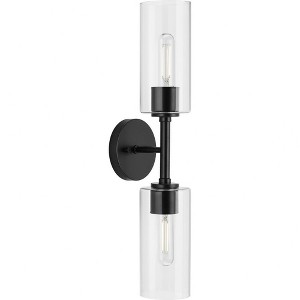 Progress Lighting Cofield 2-Light Wall Bracket, Matte Black, Cylindrical Glass Shade