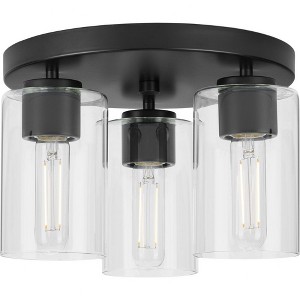 Progress Lighting Cofield 3-Light Flush Mount, Matte Black, Glass Shades
