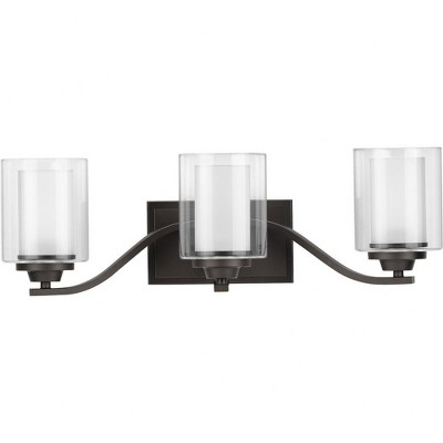 Progress Lighting Debut 3-Light Bath Vanity Fixture, Steel, Graphite, Clear Seeded Glass
