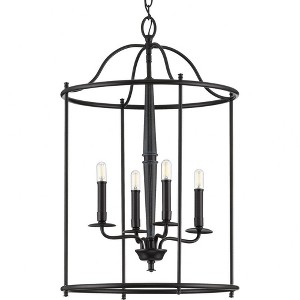 Progress Lighting Durrell 4-Light Foyer Pendant, Matte Black, Open-Cage, No Shade